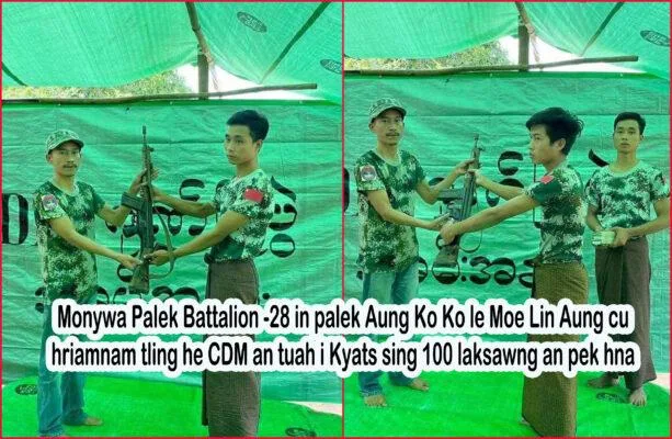 Monywa Palek Battalion -28 in palek Aung Ko Ko le Moe Lin Aung cu hriamnam tling he CDM an tuah i Kyats sing 100 laksawng an pek hna, Ralhraang nih inn an khanghpiak hna caah Aung Ko Ko anu le apa umnak an ngei lo