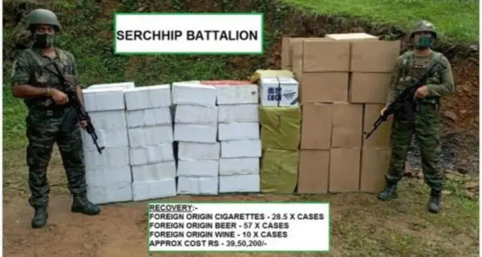 Assam Rifles le Custom Prevention Force nih nihin August 8 chun ah Myanmar lei in a rak lut mi kuva thei, cigarette, beer le wine tam ngai an tlaih.
